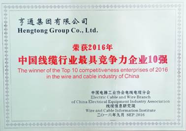 HENGTONG Keeps No.1 In Top 10 Most Competitive Enterprises In China Cable Industry